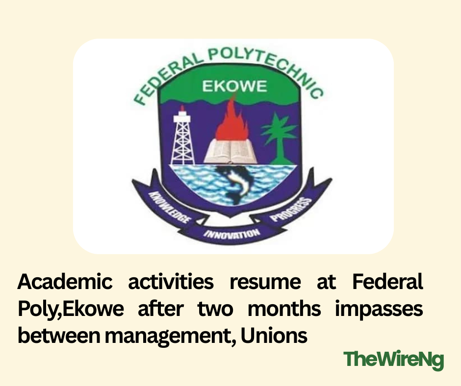 Academic activities have resumed at the Federal Polytechnic, Ekowe, in Bayelsa State, following an end to the industrial action that had crippled the institution for over two months.